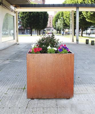 Nos jardinières en acier corten portent le traitement acier passivé et corten, qui est le moyen d'obtenir l'aspect rouille que les clients, les architectes, les mairies aiment tant... C'est un traitement qui entoure et protège l'acier, l'empêchant de se détériorer. Avec les traitements et l'application appropriés des produits, le produit acquiert un effet d'oxydation uniforme dans tout le produit. Les jardinières en acier corten peuvent être utilisées à l'intérieur comme à l'extérieur. Ils ont l'air bien dans l'ensemble. Demandez maintenant un prix pour votre projet.