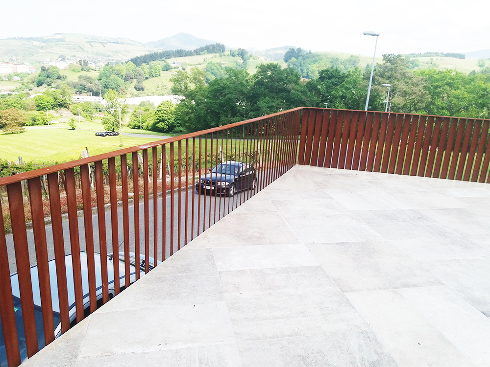 El cliente ya disfruta de una barandilla de acero corten con efecto estético de oxidación. Un tipo de acabado que encaja en todo tipo de entornos.
