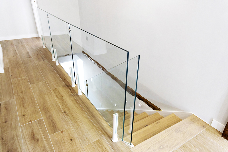 Proyecto de fabricación y montaje de barandilla de vidrio con el soporte de diseño propio de Ibarkalde.
