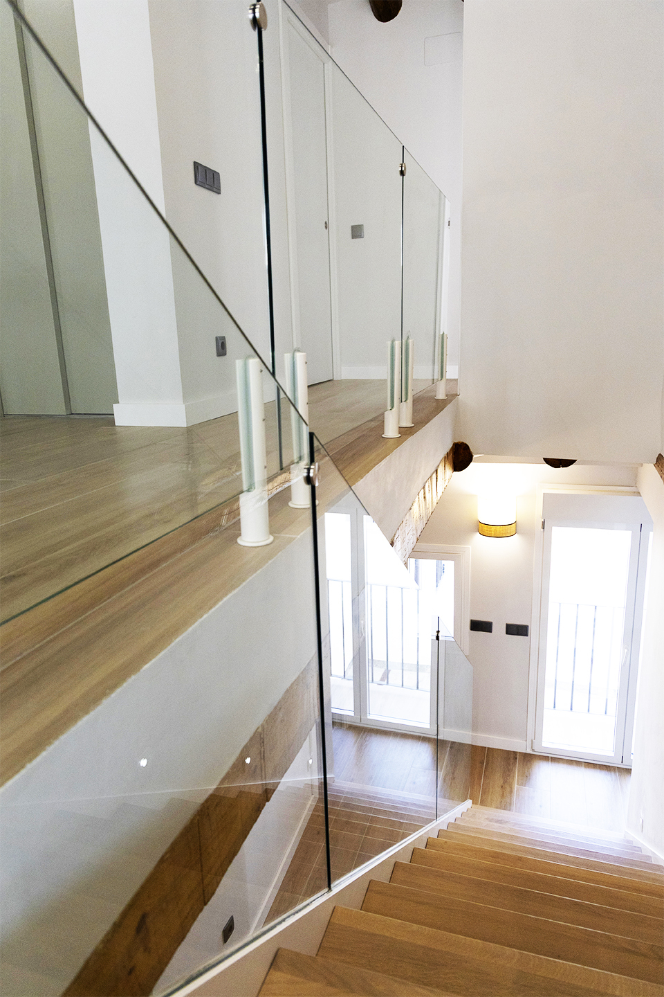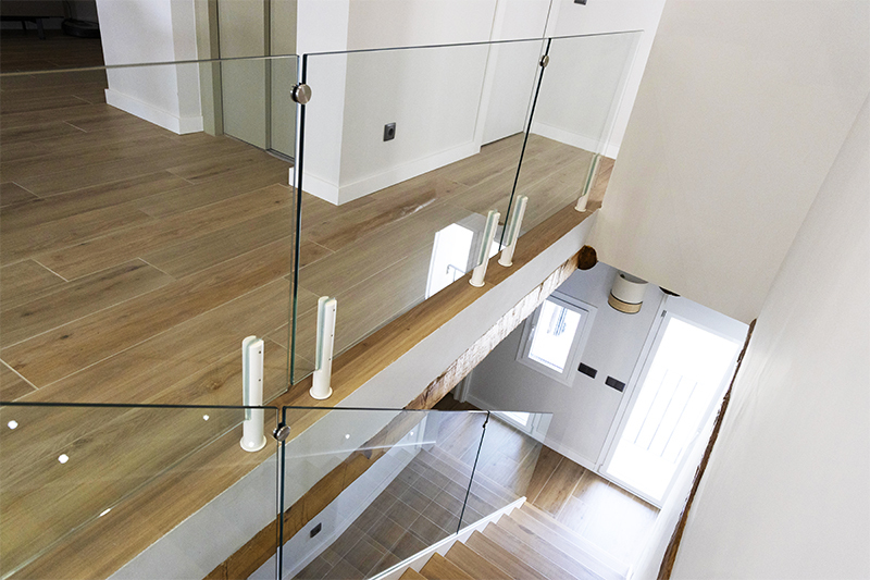 Barandilla de vidrio instalada con soporte de diseño propio de Ibarkalde