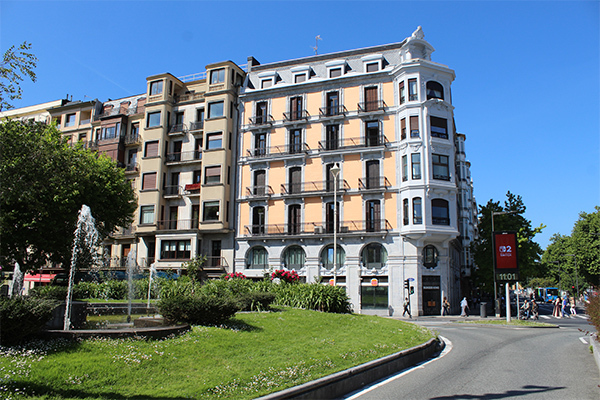 Sus vecinos disfrutan de unas vistas privilegiadas. La fachada nor-este este mira al Teatro Victoria Eugenia y la nor-oeste al Mercado de la Bretxa.
