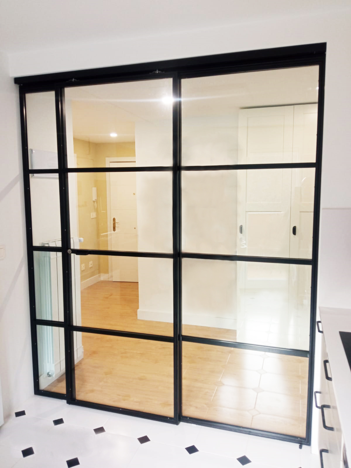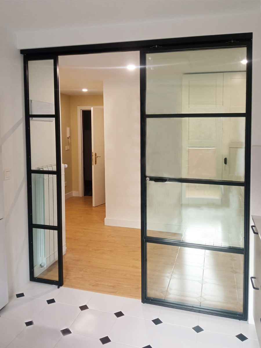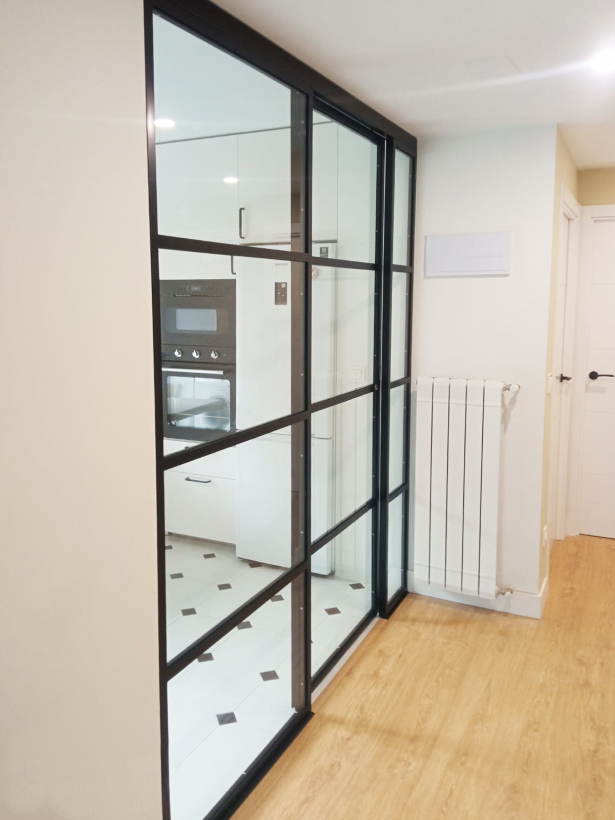 Si necesitas un cerramiento interior para separar la cocina del salón contacta con Ibarkalde. Fabricamos a medida este tipo de cierres. Con hojas correderas, puertas abatibles, marcos sobre muretes, combinados...