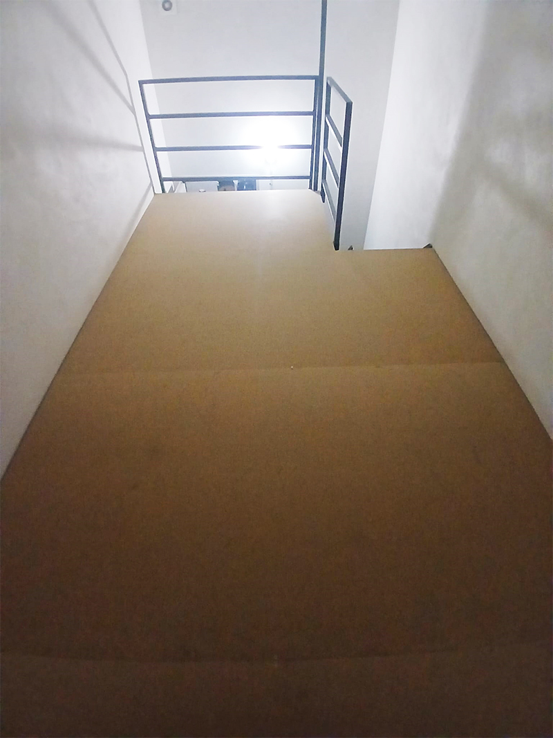 Hemos colocado una escalera fija formada por zancas laterales de acero al carbono con peldaños de chapa lagrimada antideslizante. Una escalera segura, robusta y funcional para subir y bajar objetos a la entreplanta.