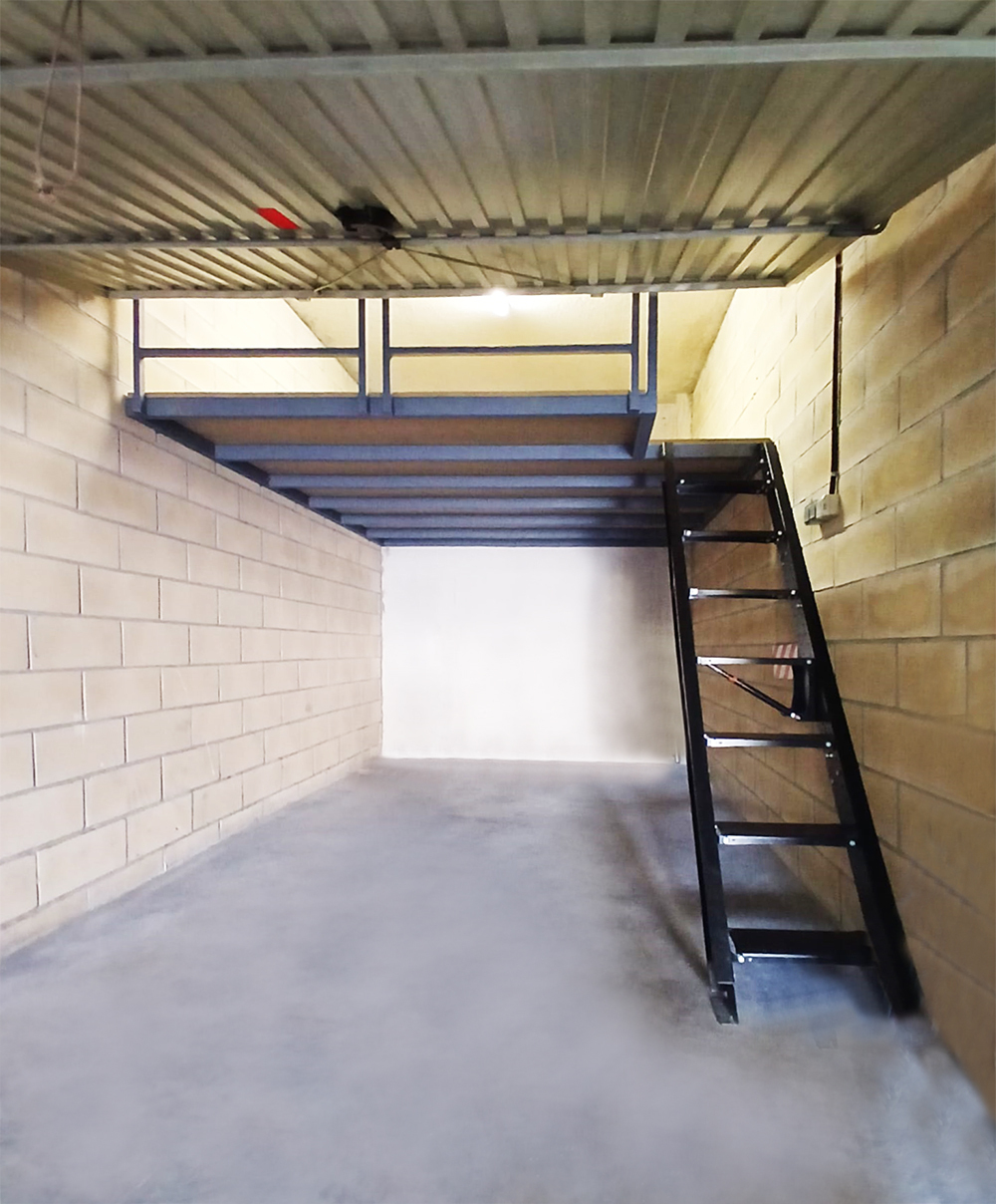 Entreplanta metálica para garaje con escalera abatible termolacada en color negro