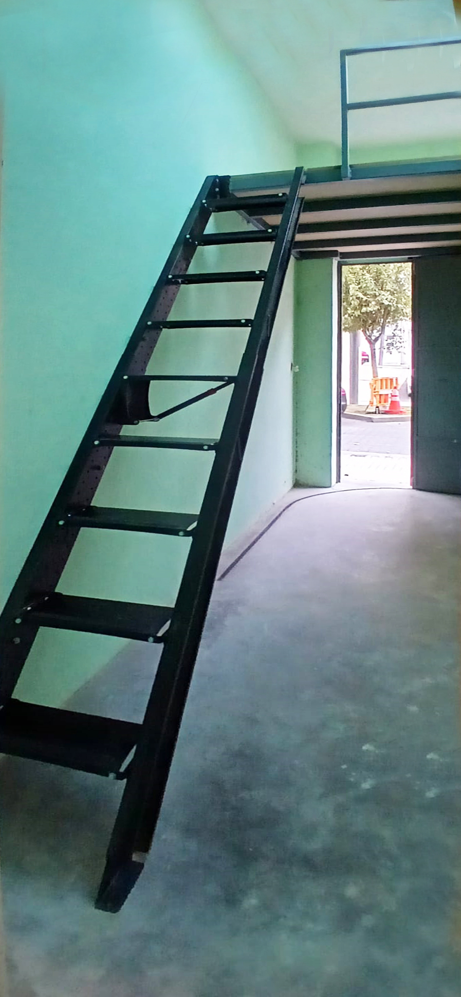 Entreplanta para garaje con escalera articulada en color negro RAL 9005