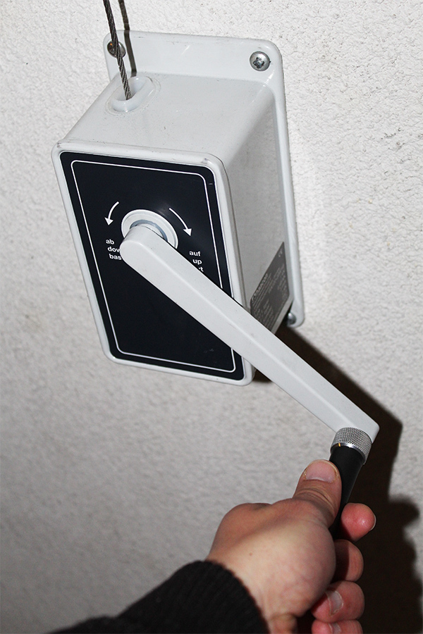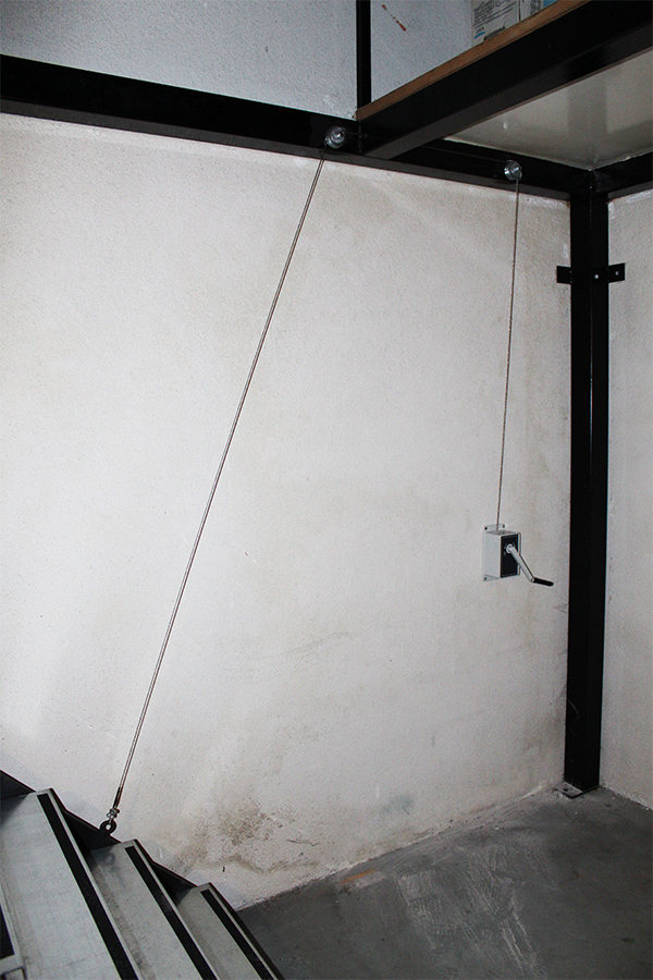 Gracias a este cabestrante, facilmente manejable, el cliente puede subir y bajar la escalera a su gusto. Dejando un espacio diáfano de forma habitual y bajando la escalera en las ocasiones que deba hacer uso de la entreplanta.