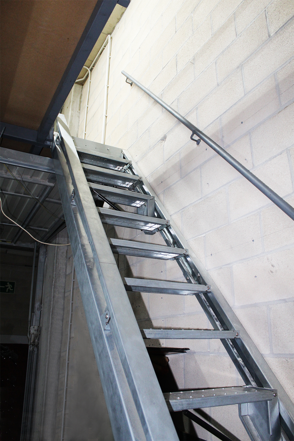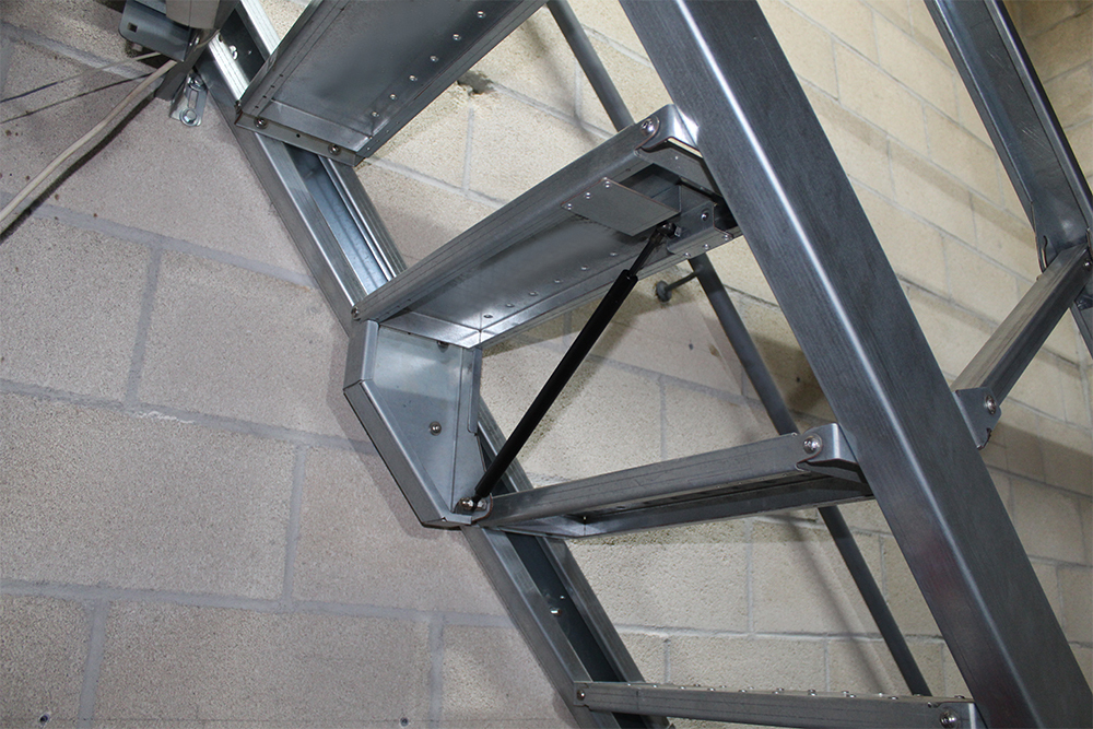Proyecto de diseño, fabricación y montaje de escalera lateral articulada con barandilla integrada para acceso a entreplanta de garaje. Las escaleras articuladas son muy útiles en garajes, ya que al replegarse cuando no se utiliza queda un espacio más amplio para maniobrar el vehículo o incluso para aparcar dos coches. Es una consulta muy habitual entre nuestros clientes y cada vez son más los que se animan a instalar este tipo de escaleras. Cuando necesiten acceder a la entreplanta solo tienen que abrir la escalera. Así de sencillo. Después, la mayoría del tiempo queda recogida en la pared ocupando muy pocos centímetros. Entre los diferentes modelos de escaleras articuladas que ofrecemos en Ibarkalde esta es una escalera muy completa ya que tiene barandilla de seguridad integrada. Además, esta se puede manipular a gusto del cliente. La puede desplegar para subir a la entreplanta con más seguridad, o en el caso de que necesite subir objetos voluminosos la puede dejar bajada para transportar objetos con más facilidad. Las escaleras articuladas de Ibarkalde tienen un mecanismo muy sencillo. Incorporan un pistón que es el encargado de absorber el peso de la estructura metálica y se abre y cierra sin hacer esfuerzo. Para que te hagas una idea, es un sistema similar al de los maleteros de los coches. Esta escalera lateral articulada con barandilla integrada es una estructura segura y estable. Está fabricada en acero al carbono galvanizado y los peldaños cuentan con ranuras antideslizantes para evitar que el agua se estanque en ellas. En Ibarkalde somos especialistas en escaleras. Y entre los diferentes modelos de escaleras que ofrecemos a nuestros clientes, tenemos en nuestro catálogo esta escalera articulada con barandilla integrada. O si tienes un duplex y poco espacio en tu pasillo para colocar una escalera convencional, también puede ser lo que estabas buscando. También encaja muy bien entornos industriales que necesitan escaleras de acceso a azoteas, tejados, salas de máquinas... En Ibarkalde te ayudamos con tu proyecto. Mira aquí otros modelos escaleras articuladas.