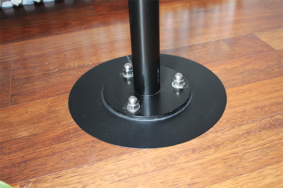 El eje central de la escalera modelo Anglet es éste poste central tubular anclado al suelo. Tiene un diámetro lo suficientemente ancho como para dotar de estabilidad a la escalera sin ocupar más espacio del necesario.