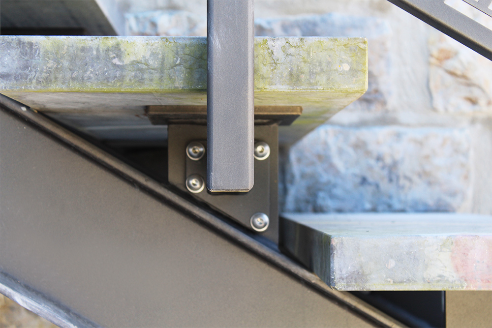 Llevan soldadas varias ménsulas que sirven como apoyo para los peldaños cerámicos.