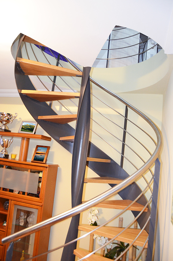 Escalera modelo «Azkoitia»: helicoidal con zanca central curvada