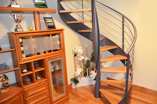 Se trata de una escalera helicoidal, cuyo trazado en forma circular permite ir ganando altura hasta llegar a la planta superior.