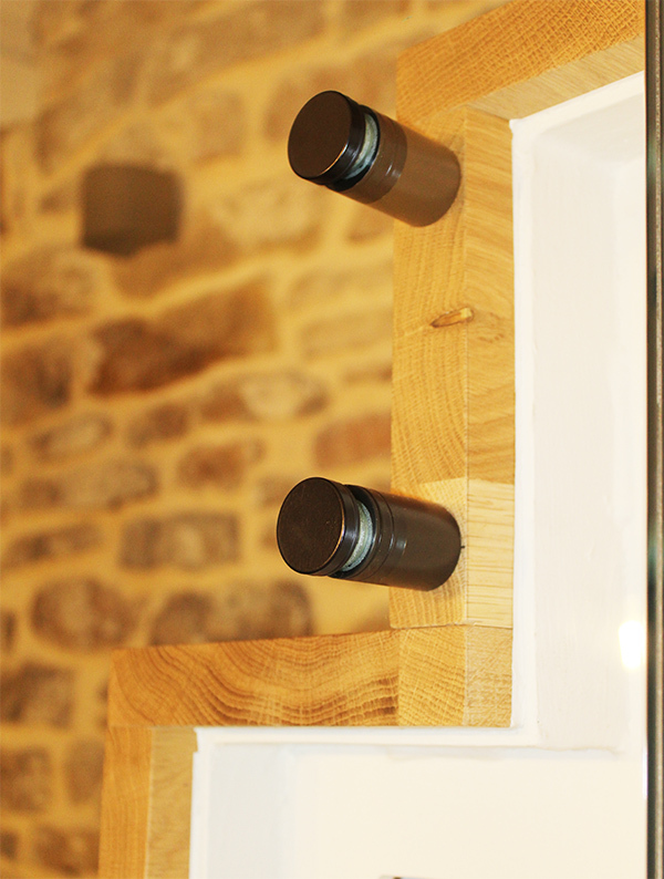 Estos bulones de color negro son los encargados de fijar el vidrio a la escalera y forjado.