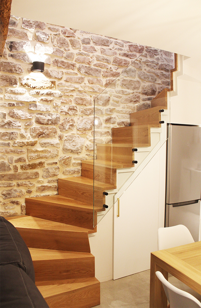 Te presentamos la escalera modelo "Bidasoa". Un nuevo proyecto realizado por Ibarkalde en vivienda del casco antiguo de Hondarribia en el que hemos realizado el diseño, la fabricación y el montaje en obra.