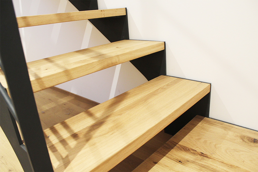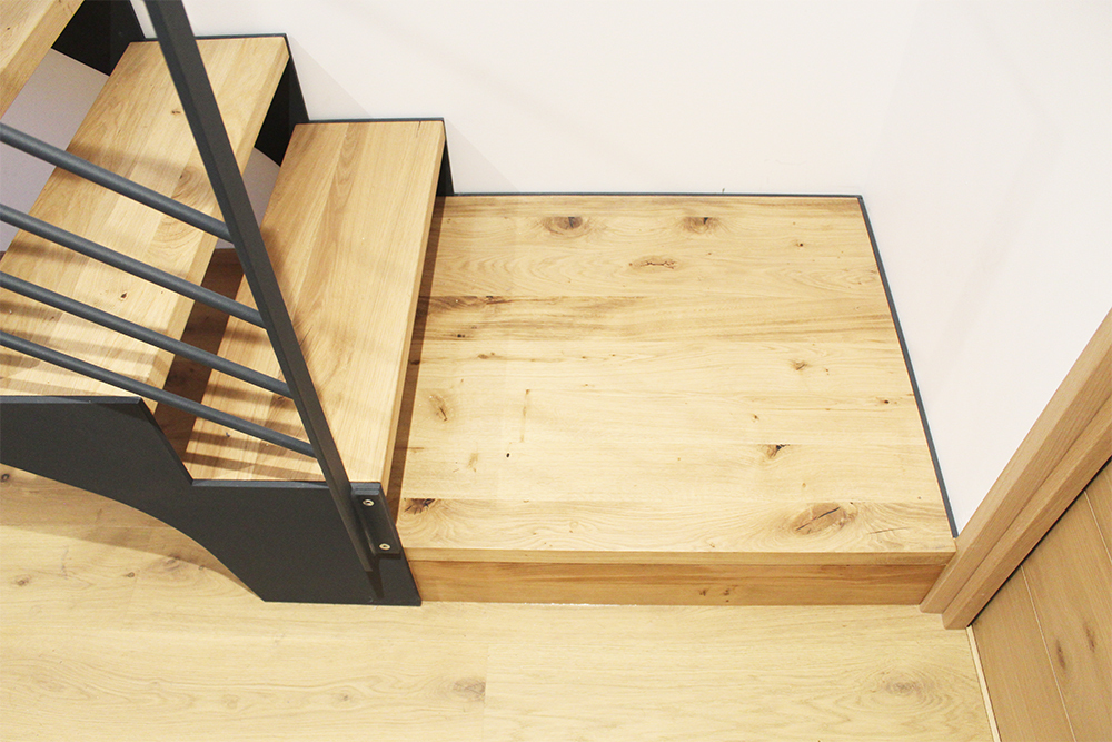 Las huellas de madera han sido milimétricamente diseñadas por nuestro técnico especialista en escaleras para que sea una escalera cómoda y con una altura entre peldaños adecuada.