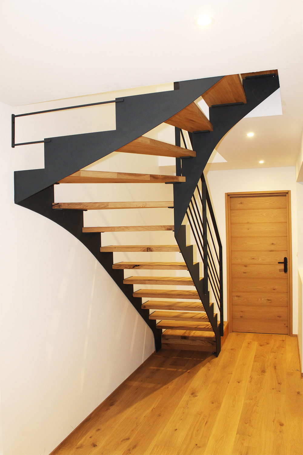 Proyecto de diseño, fabricación y montaje de escalera modelo "Ustaritz", realizado totalmente a medida para un cliente de la zona de Ustaritz en el del País Vasco francés.