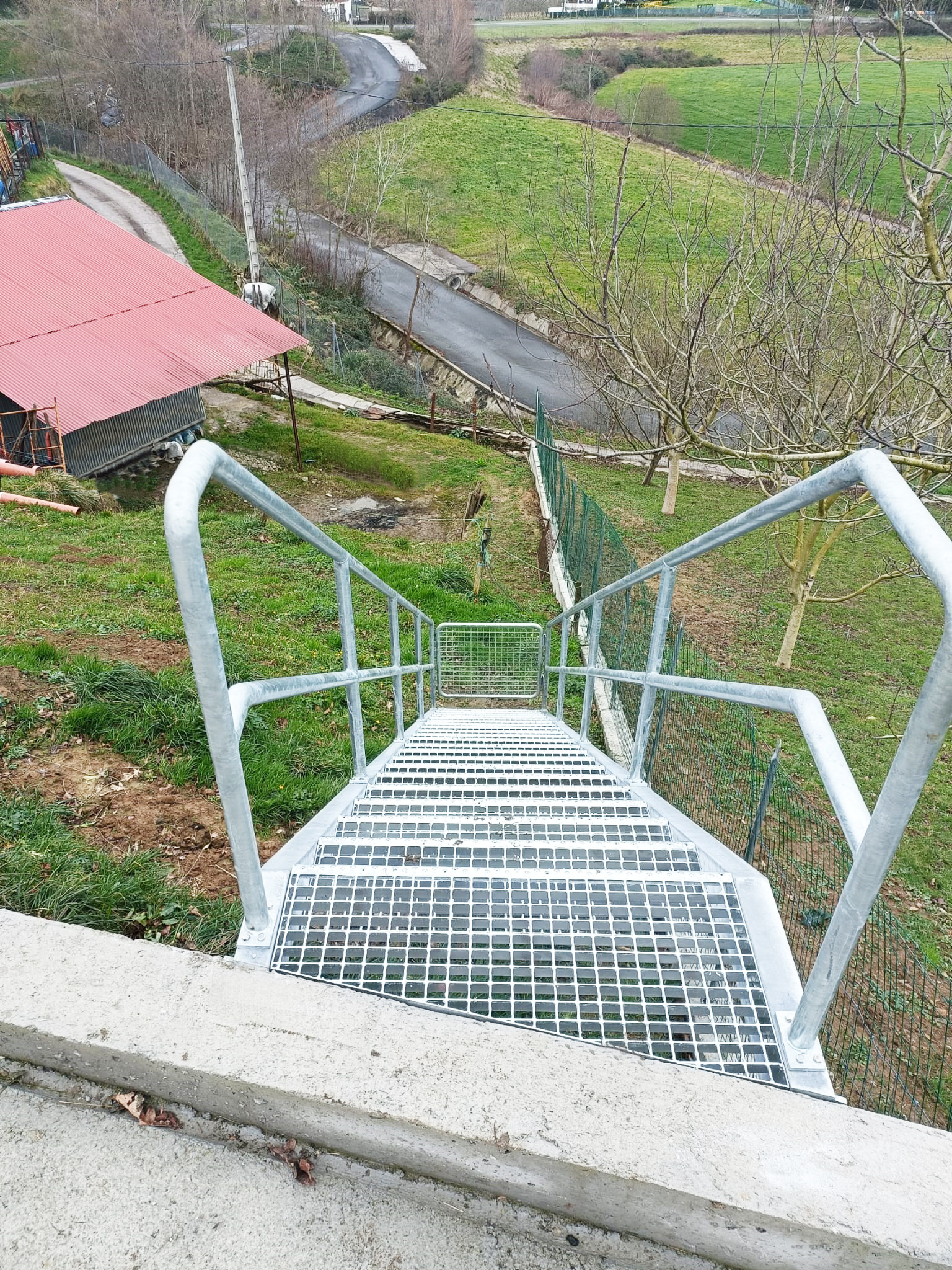 Proyecto de diseño, fabricación y montaje de escalera modelo "Zelai-Txiki", instalada en una zona montañosa cercana al municipio gipuzkoano de Urnieta. El objetivo de la escalera es crear un acceso seguro desde una terraza a un terreno privado.