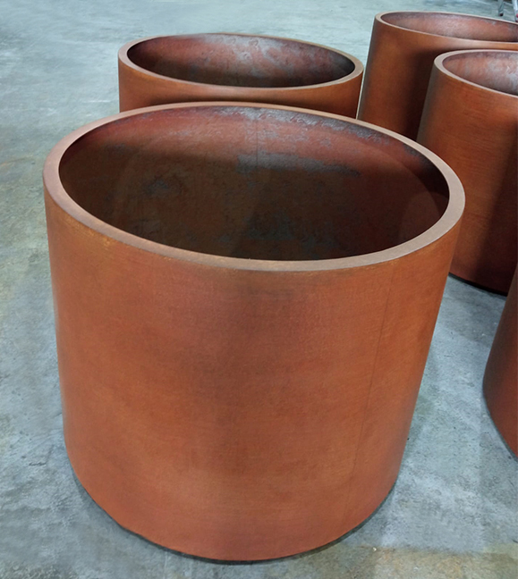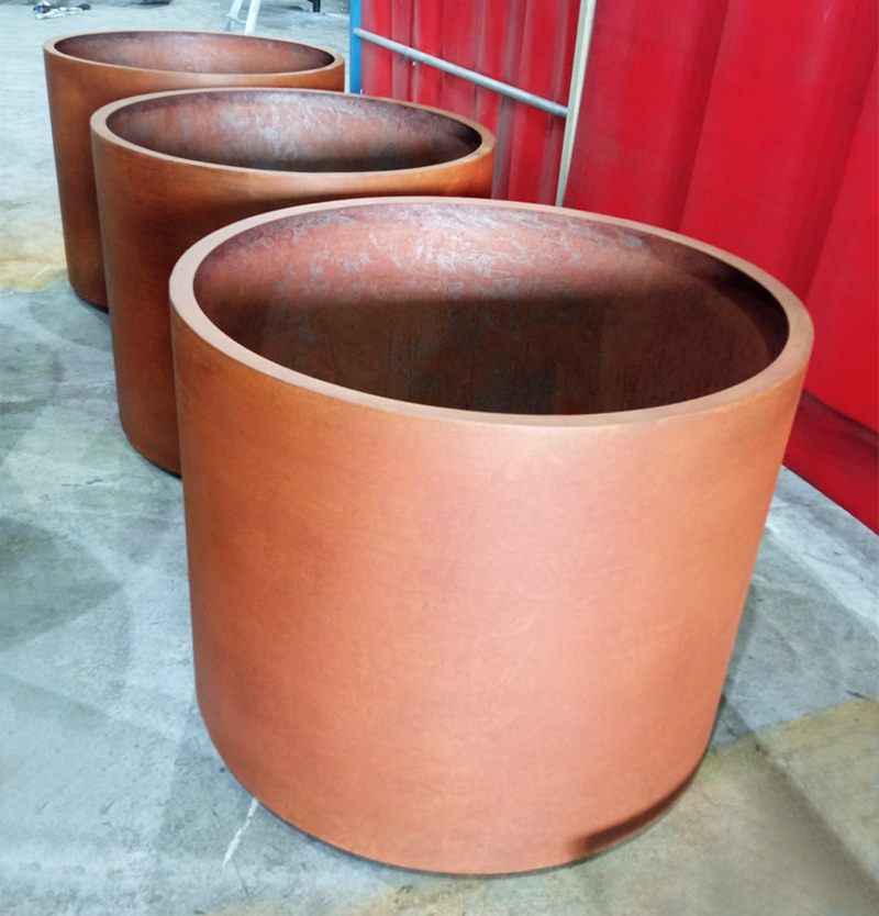 Fabricación de jardineras circulares de acero corten