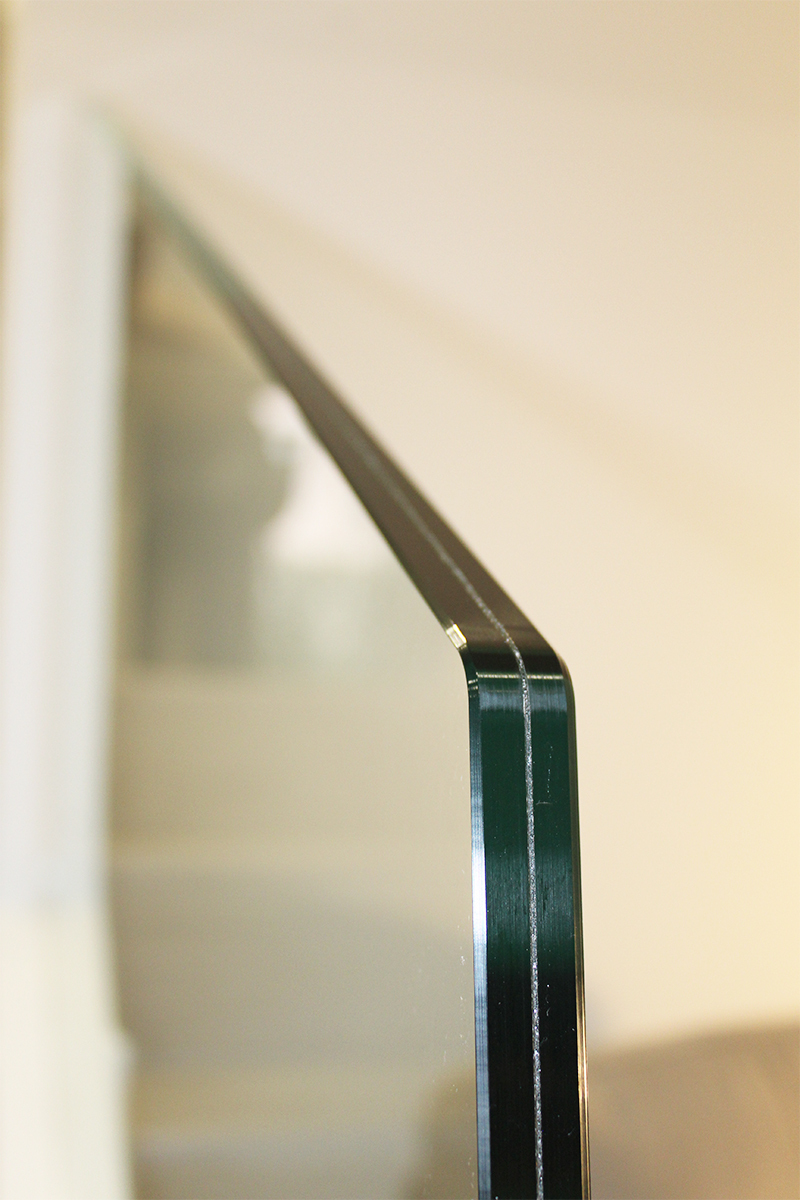 El vidrio instalado es de 8+8 incoloro con los cantos pulidos.