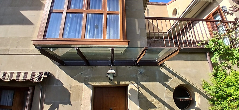 Marquesina de acero al carbono y vidrio en vivienda de Donostia